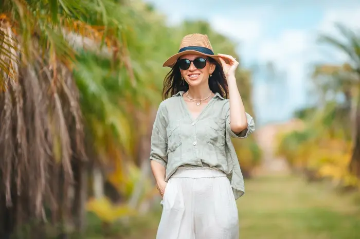 Bahan-bahan seperti katun dan linen sangat baik untuk memungkinkan sirkulasi udara yang baik. Jangan lupa untuk membawa topi atau payung untuk melindungi diri dari sinar matahari langsung.