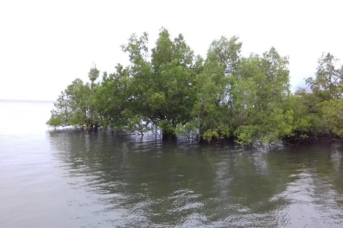 Hutan mangrove ini tidak hanya memperkaya keindahan alam pantai, tetapi juga berfungsi sebagai ekosistem penting yang melindungi pantai dari erosi serta menjadi habitat bagi berbagai spesies hewan, termasuk burung dan ikan.