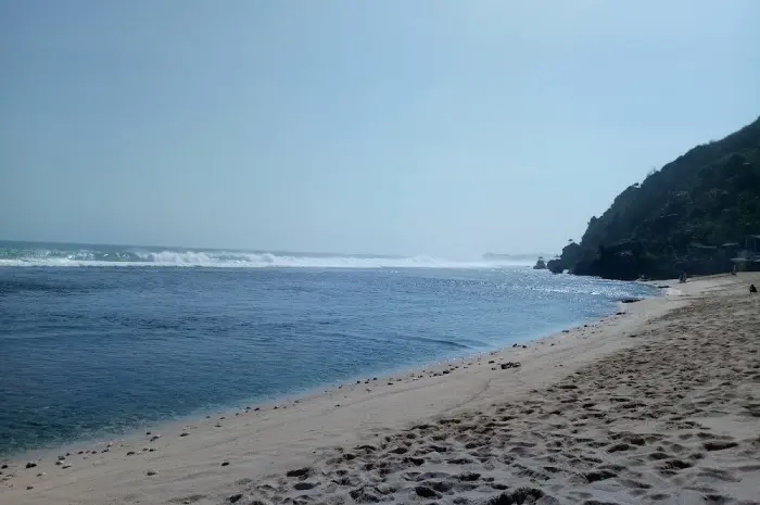 Ketika kamu melihat ke arah samudra, perpaduan warna putih pasir, birunya laut, dan langit yang cerah menciptakan pemandangan yang begitu memanjakan mata. Meski demikian, perlu diingat bahwa Pantai Indrayanti memiliki ombak yang cukup besar.