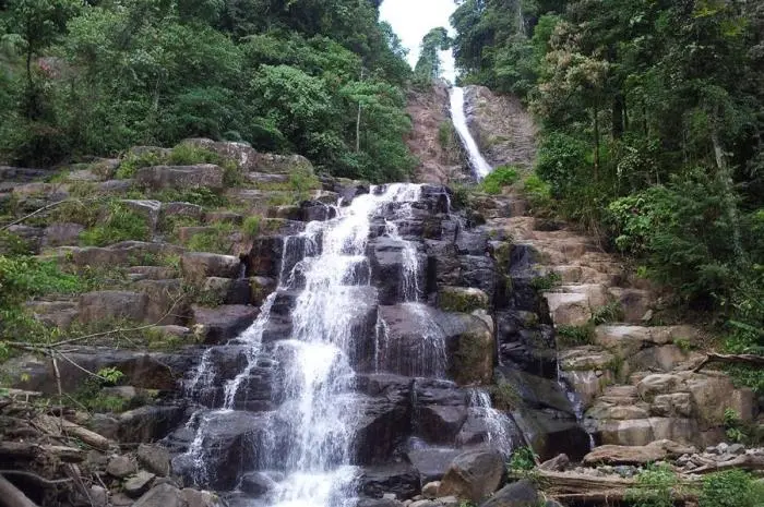 Air terjun ini dikelilingi oleh hutan lebat dan aliran sungai yang jernih, menciptakan pemandangan yang spektakuler dan suasana yang tenang untuk dinikmati.